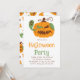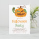 Prepare-se para uma noite terrivelmente divertida com este convite de festa de Halloween! Apresentando uma design bonitinha e assustadora, a frente do convite está cheia de olhos laranja festivos e ossos verdes, moldando um clássico jack-o-lanterno esculpido com um pequeno fantasma amigável. O verso tem um padrão de coordenação de abóboras, ossos e pontos decorativos. Este convite único é perfeito para uma reunião assustadora, uma festa de Halloween amigável pela família, ou uma festa de fantasia. Personalize-o facilmente com os detalhes do seu próprio partido para um evento memorável.