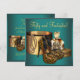Modelo de convite de festa de aniversário de sapato de salto alto em jade e ouro elegante. Este lindo convite de festa de 50 anos em azul-teal e dourado é facilmente personalizado para o seu evento, bastando escolher o botão "Personalize!" para começar a adicionar os detalhes do evento, estilo de fonte, tamanho e cor da fonte e texto. Por favor, observe que todos os adesivos, cartões e desenhos de convite que você encontrará no Zazzle são gráficos impressos sem joias, laços, relevos, relevos ou peças ou partes adicionadas.