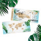 República Dominicana Punta Cana Destinding Beach Wedding Embaraçando Bilhete de Passagem Dourado Salve a data com coração e ícone de avião com folhas tropicais