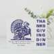 Simples convite para o Janto de Ação de Graças, projetado com um gráfico de peru e uma tipografia de THANKSGIVING em azul marinho contra uma cinza de prata clara. Ao contrário, há um texto PERSONALIZÁVEL, para que você possa criar seu próprio texto e adicionar seu nome e detalhes. Escolha entre uma ampla seleção de convites para Ação de Graças, cartões de saudação e presentes projetados por Designs Bereanos.