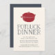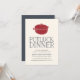 Convide amigos para uma festa divertida de janto potluck com estes convites simples e modernos, com "janto potluck" em letras de estilo manuscrito de enfumaçado com uma ilustração vermelha de pote de forno holandês. Adicione os detalhes do janto e deixe os convidados saberem como confirmar os detalhes do prato, usando os campos modelo.