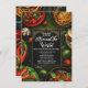Faça uma viagem gastronômica pelo mundo com um jantar temático ao redor do mundo. Celebre seu evento social divertido, festa de aniversário ou noite das meninas dentro ou fora de casa com este convite de jantar luxuoso que apresenta uma bela obra de arte gerada por computador com uma mesa cheia de alimentos culturais variados, espaguete italiano, tortilhas mexicanas, sopa indiana, alho, limão, tomate, manjericão e pimentões quentes. Convites de jantar de mesa de chefs modernos contemporâneos ricos e elegantes com um adorável tema de comida para entreter e celebrar! Ótimo para celebrar uma noite divertida de casal, coquetel social, ocasião especial de negócios ou pessoal. Personalize online com os detalhes do seu evento.