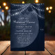 Coloque o tom perfeito para o seu jantar de ensaio com as luzes de cordas azuis da Marinha gravadas no convite. Este design elegante apresenta uma árvore rústica adornada com luzes de cordas e iniciais esculpidas, criando uma atmosfera quente e convidativa. Ideal para eventos em áreas exteriores e matemáticas, este convite único irá atrapalhar seus convidados e tornar seu jantar de ensaio memorável.