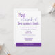Este é um convite para jantas de ensaio divertido, tudo pronto para suas informações e depois impressão. Este convite roxo usa a diversão dizendo: "Come, bebe e se casa." Digite suas informações e tenha o convite perfeito para seu evento em minutos.