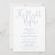 Este convite de jantar de ensaio de elegante letra poeira azul pode ser personalizado com todas as informações do seu evento especial. Criado por Thisisnotme©