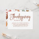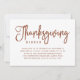 Convide seus amigos e familiares para o jantar de Ação de Graças com esses convites elegantes! Um fundo branco apresenta uma tipografia moderna e rica em marrom, escrita à mão. O verso do convite de Ação de Graças apresenta um lindo padrão de folhas de outono.