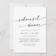 Este convite para jantar de ensaio de casamento preto e branco é perfeito para uma noite minimalista antes do ensaio de casamento. O design boêmico moderno preto-e-branco apresenta caligrafia rústica simples com um estilo único, mas clássico. Perfeito para qualquer estação: primavera, verão, outono ou inverno.