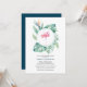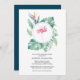 Os convites elegantes e tópicos do jantar de ensaio caracterizam meu flamingo original do rosa da aguarela cercado pelas hortaliças botânicas luxúrias e por um pássaro da flor de paraíso. Personalize com seu partido ou jantar os detalhes alinhados na parte inferior na rotulação moderna. Os convites invertem aos azuis marinhos contínuos. Para ver mais design goste disto, visita www.zazzle.com/vginvites