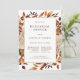 Convite de Jantar de Ensaio de Casamento de Outono. Este convite elegante de jantar de ensaio de casamento apresenta folhas de laranja queimada e terracota pintadas à mão em aquarela, dálias creme e bege, e belas rosas de cor ferrugem em um fundo branco. A parte de trás inclui um buquê floral e de folhas correspondente. Encontre itens correspondentes na Coleção Romance de Outono Branco.