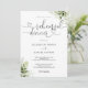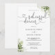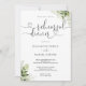 Convite de jantar de ensaio elegante com coração floral verde script com os seus nomes e detalhes do jantar de ensaio em texto chic. Concebido por Thisisnotme