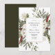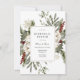 Convite de jantar de ensaio de casamento com uma moldura de verde perene aquarela com poinsettias. Personalize com suas informações ou clique em "Clique para personalizar ainda mais" para editar estilos de fonte, tamanho e cores.