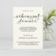 Este convite elegante, preto e branco do jantar de ensaio caracteriza uma lunática, pia batismal escrita à mão da caligrafia do vintage-estilo. Os detalhes do evento podem ser personalizados para seu partido.