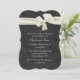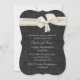 Preto chique no convite preto do jantar de ensaio do casamento tema damasco, com gráficos de uma fita e de um arco luxúrias do cetim do marfim, na parte superior. Personalize o texto do marfim para serir suas necessidades do evento. O convite é mostrado no estoque básico do cartão do estilo do suporte, escolheu o estoque que da forma e do cartão você prefere.