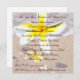 Convites tropicais do jantar de ensaio da praia. Uma flor amarela bonito do plumeria fotografou em Havaí contra um Sandy Beach onde seashells, coral, e uma outra lavagem da flor em terra por uma onda de oceano delicada. Se você precisa algum auxílio criar seu próprio design, sinta livre contactar-me através de minha galeria de Zazzle.