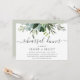 Este convite para jantar de ensaios apresenta eucalipto pintado à aquarela e folhas verdes. Para personalização mais avançada deste design, clique no link "Personalizar ainda mais". Itens correspondentes também estão disponíveis.