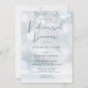 Convite de jantar de ensaios elegante de inverno em país das maravilhas de neve com os seus nomes e detalhes do jantar de ensaios em texto chique e as iniciais do seu monograma no verso. Concebido por Thisisnotme
