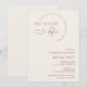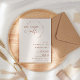 Convite de jantar de ensaios com tipografia moderna. Convite minimalista de script terracota boho clássico, porém único, com número de data grande e negrito e design de texto curvo.