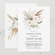 Defina o tom das celebrações do seu casamento com este elegante convite de jantar de ensaio boêmio, apresentando uma paleta neutra suave de grama de pampas, botânicos secos e flores brancas delicadas. Projetado com uma estética rústica moderna, este convite é perfeito para casais que planejam um tema de casamento boho, desértico ou minimalista.