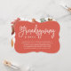 Convide seus amigos para a sua versão do jantar de Ação de Graças com esses convites elegantes! Um fundo rico em cor terracota apresenta uma tipografia moderna de letra manuscrita branca. O verso do convite de Ação de Graças apresenta um lindo padrão de folhas de outono.