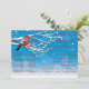Um Robin chilreando os detalhes do convite da Festa de Pratos Compartilhados. No verso, uma sequência de bolas brilhantes penduradas de um lado dos detalhes.