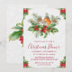 Robilhões Rústicos em Aquarela com design de Bagas de Inverno de Holly em fundo de renda floral branca