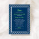 Este convite de jantar de ensaio náutico divertido e festivo apresenta um gráfico esportivo de lancha em verde sobre um fundo azul-marinho ousado, emoldurado por uma borda elegante de treliça de diamante. A tipografia de destaque verde brilhante adiciona um toque fresco e elegante de cor. Todos os nomes, datas e detalhes do evento são totalmente editáveis. Uma ótima escolha para um jantar de ensaio de casamento à beira de um lago, barco ou na costa.