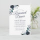 Convites de jantar de ensaio de casamento navy elegantes com um fundo branco moderno que pode ser alterado para qualquer cor, flores de aquarela azul boho rústicas e um modelo de jantar de casamento moderno.