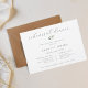 Convite de jantar de ensaio com caligrafia delicada e design de folhagem moderna e elegante.