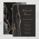 A borda esquerda deste convite de ensaio de casamento moderno e elegante apresenta uma borda de ágata em aquarela preta aparada com brilho dourado falso. O texto personalizável combina caligrafia dourada, fontes copperplate e itálico em um fundo preto claro. O verso apresenta um design de ágata preto e dourado correspondente.