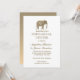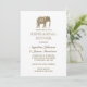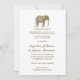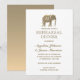 Convite de jantar de ensaio simples, elegante, com caligrafia moderna minimalista e monograma de silhueta de elefante em falso ouro no topo.