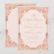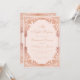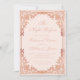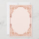 Este convite para jantar de ensaio rosa bege e dourado-rosado com um ar vintage tem uma moldura ornamentada (falso) dourado-rosado com elegantes decorações barrocas rosa sobre um fundo rosa bege. O título, a ocasião e o nome são escritos em caligrafia elegante. Todo o texto pode ser personalizado e tem uma cor rosa semelhante à moldura dourado-rosado.