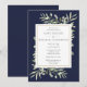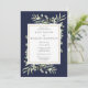 Com delicadas folhas de aquarela, este convite de jantar de ensaio de casamento botânico elegante pode ser personalizado com as informações do seu jantar de ensaio, com um fundo azul-marinho. Criado por Thisisnotme
