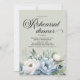 Elegante, botânico, azul poeirento e branco aquarela floral e verde-sábio convite para o jantar com uma bela fonte de escrita caligráfica. Entre em contato comigo para obter assistência com suas personalizações ou para solicitar outros produtos Zazzle correspondentes ou coordenadores para o(s) seu(s) evento(s).