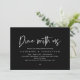 Anuncie a sua alegria para sempre em estilo com o nosso moderno tema design (Dine conosco) convite para comemorações de casamento. É ideal para casais que decidiram celebrar a noite antes do seu grande dia. Com seu design sofisticado, mas lúdico, este convite certamente define o tom de um evento inesquecível. O cartão de convite apresenta design preto clássico, adicionando um toque de elegância do eterno à sua celebração. Projetado por TeeshaDerrick