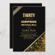 Um convite de festas de janto sofisticado, preto e ouro, aniversário de 30 anos.