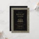 Um convite de festas de janto preto, branco e ouro enquadrado.