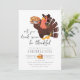 Este moderno convite de Ação de Graças de Amizade apresenta um giro peru de aquarela com ilustração de torta e o ditado "Coma Pie, Beba Vinho, Seja Agradável" em na moda, colocado sobre um simples fundo branco. É a maneira perfeita de convidar seus amigos para uma festa de Ação de Graças divertida e festiva.