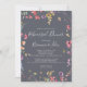 Este clássico convite de janto de ensaio floral azul selvagem é perfeito para um ensaio de casamento rústico. A design apresenta flores silvestres brancas, amarelas, roxas e brancas com folhagem em fundo de rosa e aquarela verde.