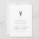 Prepare-se para o grande dia com nossos elegantes convites para jantas de ensaio de verão, com estilo náutico clássico com um olhar limpo e minimalista e um toque leve da vida marinha. Design apresenta uma ilustração de lagosta no topo. Bloqueio elegante e letras itálicas em azul marinho correspondente completam a aparência. Inclui espaço para o ensaio da sua cerimônia e detalhes do janto. Perfeito para jantadas de ensaio náuticas, de Verão ou de praia, especialmente se a lagosta estiver no cardápio!