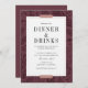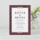 Jogue um janto de negócios com este janto elegante e este convite para bebidas. Apresenta um fundo botânico vermelho e ardido e uma tipografia clássica.