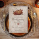 Ponha o tom para um encontro caloroso e gracioso com este belo e trabalhado Convite Jante Beige Thanksanding Pumpkin. Apresentando uma clássica abóbora de Ação de Graças cercada por botânicos do outono, folhas vibrantes de outono e uma folha vermelha de carapaça impressionante. Uma cor damasco sutil adiciona um toque de elegância do eterno, enquanto a escrita elegante combinada com a tipografia moderna traz o equilíbrio perfeito entre tradição e estilo. Quer você esteja hospedando um banquete formal de Ação de Graças ou um janto aconchegante de Ação de Amizade, este convite captura a beleza da temporada e convida seus entes queridos a comemorar com coração e colheita.