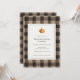 Convite Jante de ação de graças com um clássico fundo de xadrez de búfalo castanho e uma abóbora laranja. T. Personalize com suas informações. Clique em "clicar para personalizar mais" para alterar o estilo, o tamanho ou a cor da fonte.