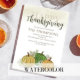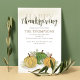 Este design apresenta um convite para jantas de ação de graças com outono, abóboras aquáticas, design de abóbora, com uma fazenda rústica, país, elegante minimalista, clássico, verde floral, com folhas de queda simples.
