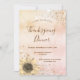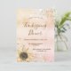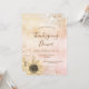 Um ouro caiu no convite Jante de Ação de Graças. Um rosa de ouro e um fundo metálico cor-de-rosa, cor-de-rosa, fino, decorado com ouro falso e poeira reluzente prateada e um girassol rústico. Personalize e adicione os detalhes da sua festa.