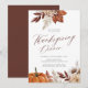 A moderna tenda castanha escura e a laranja queimada outono outono outono Folhas botânicas florais e guião de caligrafia elegante de abóbora, convite Jantado de Ação de Graças.
