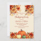 Um fundo bege suave. Decorado com abóboras e flores laranja e amarelas. Personalize e adicione os detalhes da festa.
