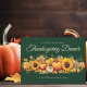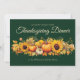 Abóboras de laranja vegetais e lindos girassóis cercados por folhas de outono decoram este antigo convite de festas jante de Ação de Graças. Convidados de festas de outono de nossa família para nossos amigos em uma bela carta verde com seus detalhes personalizados no verso.