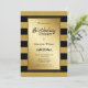 Um moderno convite de festas de janto de aniversário listrado, preto e ouro.