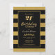 Um elegante convite de festas de janto, listrado, preto e dourado.