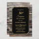 Um aniversário de 30 anos de surpresa de ouro rústico bordou madeira jantando convite de festas com texto dourado sobre fundo preto.